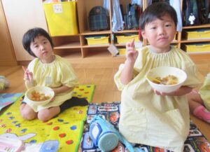 切った野菜は大きなお鍋で煮込んで、全園児で食べました。おいしかったね!