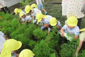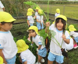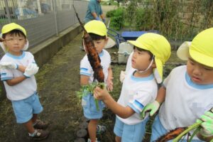 年長組で育てたじゃがいもと玉ねぎ、年中組で育てたにんじんを使いました。