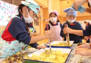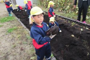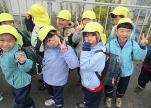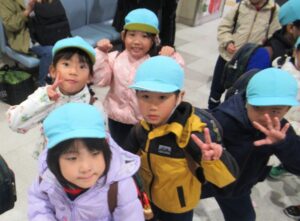 年少、年中、年長児は漆山駅まで自分たちの足で歩き電車に乗って、2歳児は園バスにて目的地に向かいました♪