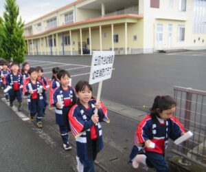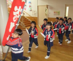 12月8日(月)年長組のみんなで「火の用心、マッチ一本火事の元!」の掛け声をかけながら園内と幼稚園の近所を巡回しました。