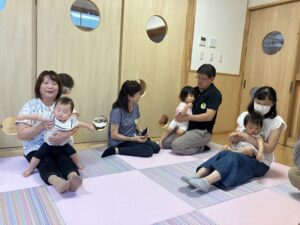 自己紹介ゲームの後は『こんにちはみんな』や『きゅうりができた!』などのふれあい遊びを行いました!