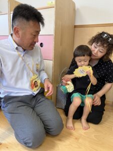 お家の人と一緒にぐるぐる回ったりハイタッチしたりなど沢山お家の人と触れ合いながら遊びました!