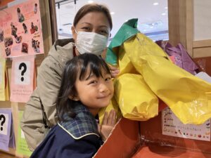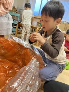 お家の人が作ってくれたお弁当を先生や友達に嬉しそうに見せていました!