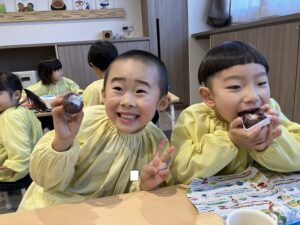 すいれん組(4歳児)がスイートポテトを作り、みんなにごちそうしてくれました🥄