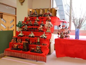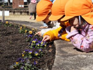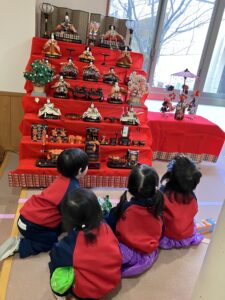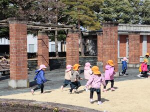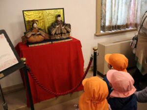 文翔館では、展示室に飾ってあった江戸時代のおひな様(享保雛)を見学したり、花壇のお花を見たり、広いお庭で走り回ったりして遊び、楽しいお散歩になりました。