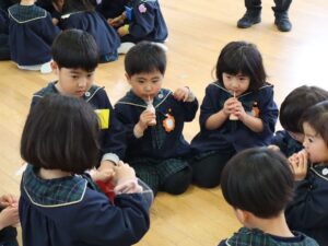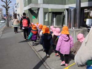 2歳児のおともだちも年少のお兄さん・お姉さんに手をつないでもらい、がんばって歩きました。